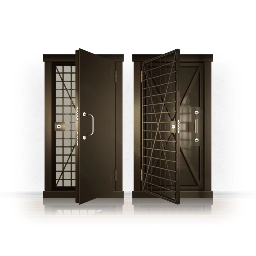 Металлические двери КХО и КХН представляют собой входные блоки, обладающие высоким уровнем взломостойкости и состоят из трех основных элементов: усиленного каркаса, сплошного металлического полотна и решетчатой двери. Дверной блок изготавливается из стального уголка 100*100 мм. Места крепления блока к стене цементируются и закрываются стальными наличниками шириной 40 мм. Крепеж заходит вглубь стены на 80 мм. В конструкции внешней створки монтируются ребра жесткости, для обшивки используется сталь толщиной не менее 3 мм. Внутренняя решетка изготавливается из прутка диаметром 16 мм. Размер ячеек решетки должен составлять не более 15 на 15 см. В точках пересечения прутья надежно приваривают друг к другу. В КХО и КХН необходимо поддерживать определенную температуру и влажность. Для этого внутреннее пространство глухой двери заполняется теплоизоляционным материалом, а по периметру двери приклеивается уплотнитель. Такие двери оборудуются замками с повышенным уровнем взломостойкости. Специализированные двери КХО и КХН в Рыльске могут быть оснащены сигнализацией, в конструкции могут быть проушины для навесного замка и элементами для опечатывания. Если идет речь о двери в комнату хранения оружия, в створке оборудуется окно для выдачи оружия и спец. средств, которое накрывается стальной дверцей.